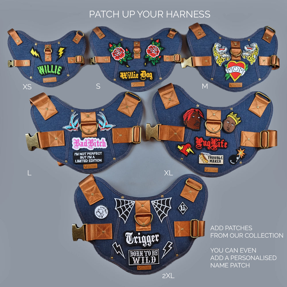Pimp it more with extra patches from our range just add them to your cart - see the image guide here as reference for sizes - smaller harnesses need fewer and smaller patches